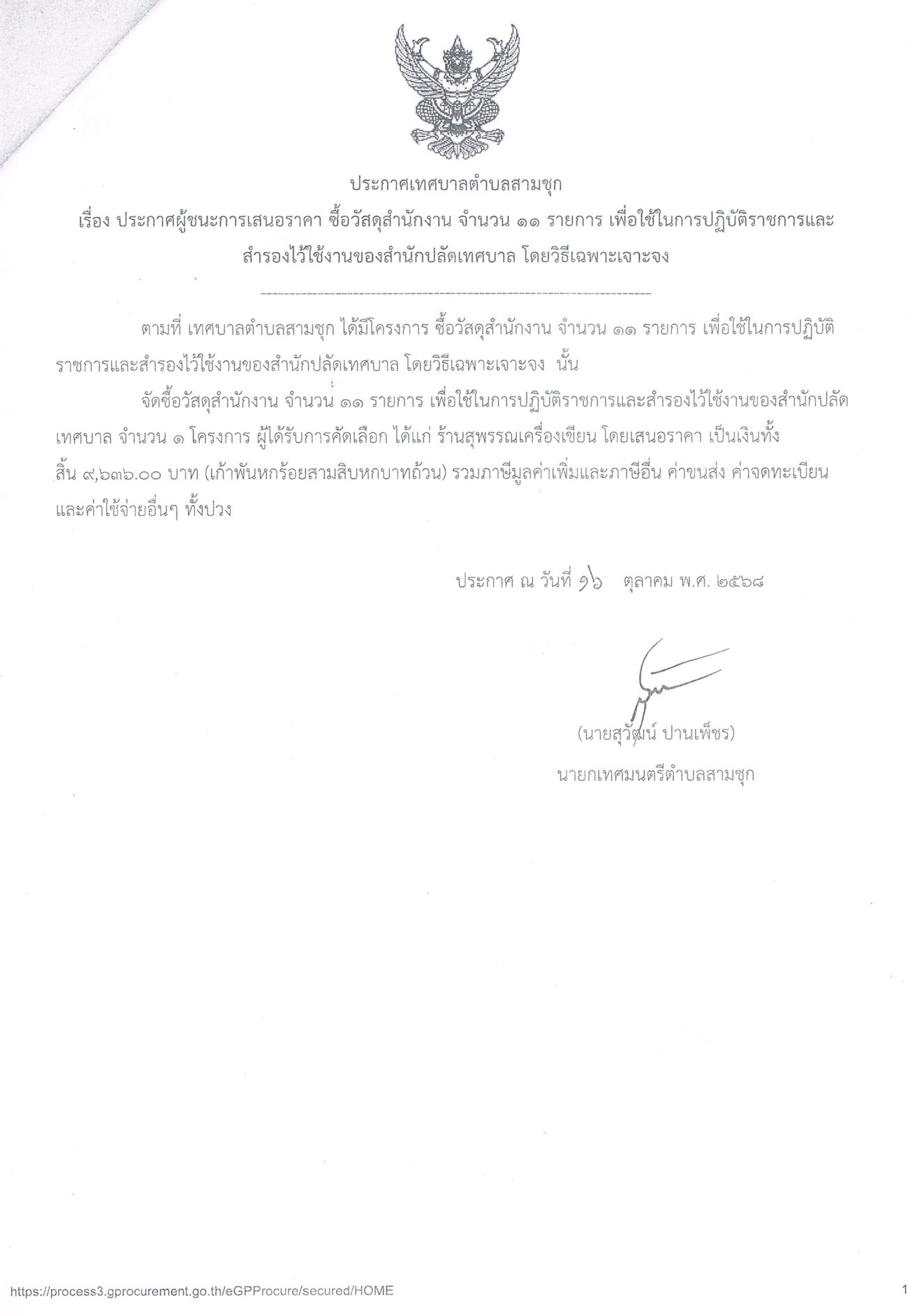 ภาพที่เกี่ยวข้อง ประกาศผู้ชนะการเสนอราคา ซื้อวัสดุสำนักงาน จำนวน 11 รายการ เพื่อใช้ในการปฏิบัติราชการและสำรองไว้ใช้งานของสำนักปลัดเทศบาล โดยวิธีเฉพาะเจาะจง
