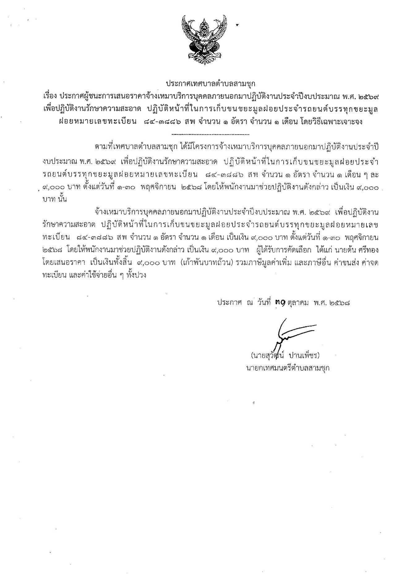 ภาพที่เกี่ยวข้อง ประกาศผู้ชนะการเสนอราคาจ้างเหมาบริการบุคคลภายนอกมาปฏิบัติงานประจำปี พ.ศ.2569 เพื่อปฏิบัติงานรักษาความสะอาดฯ โดยวิธีเฉพาะเจาะจง